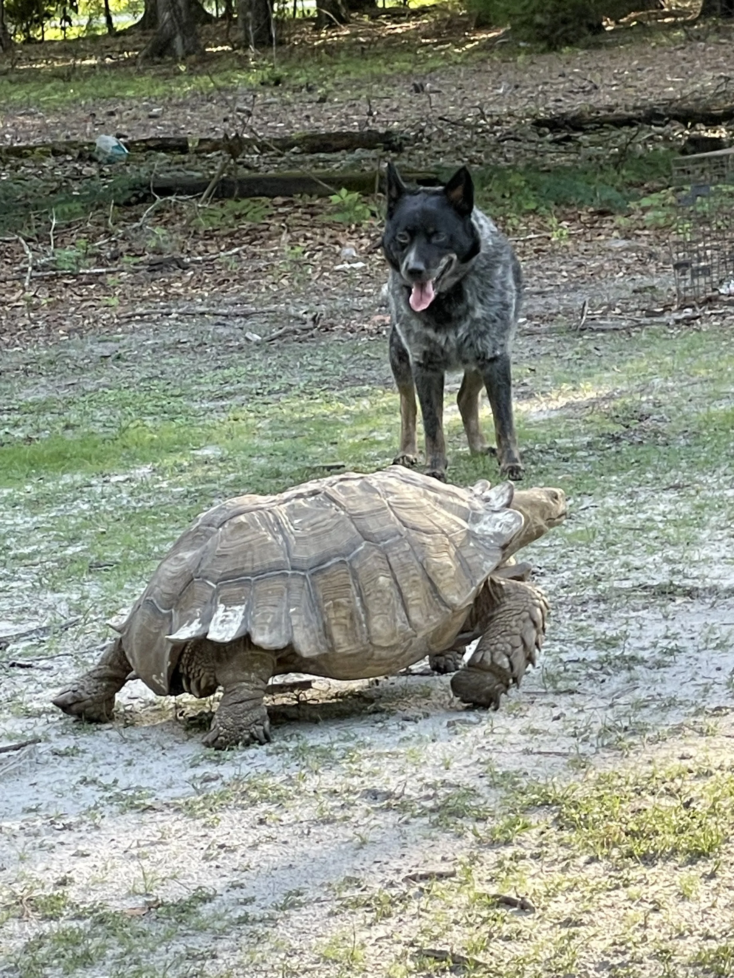 The second goal was to be able to use my mobility scooter with him. He went after tires with glee…. which is kind of normal in herding breeds. And yes a cattle dog can easily pop a tire. I was so proud of him the first time he started to grab my tire and without me saying anything remembered that it was a no-no and went his merry way.